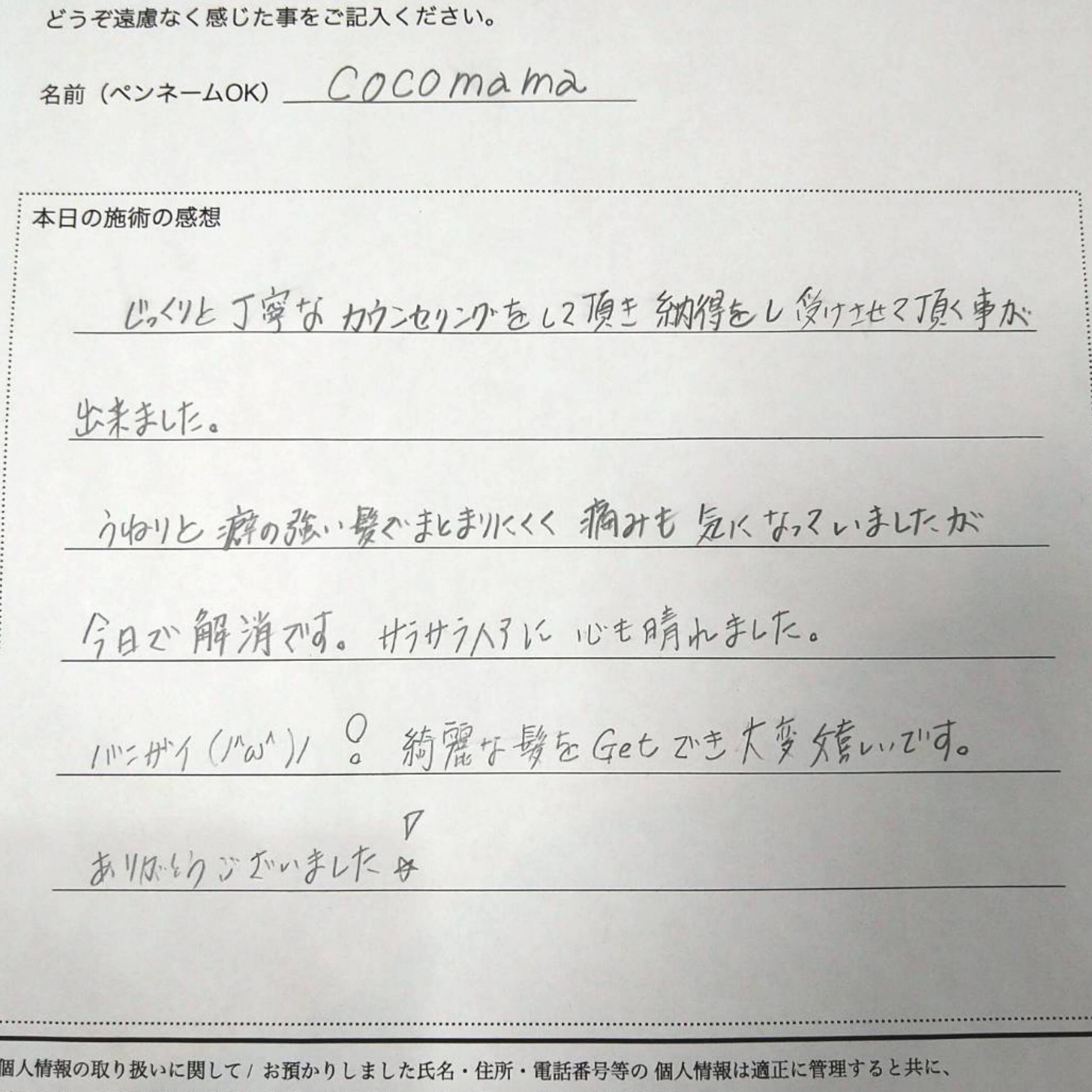施術後、キレイにまとまる仕上がりとなりました。