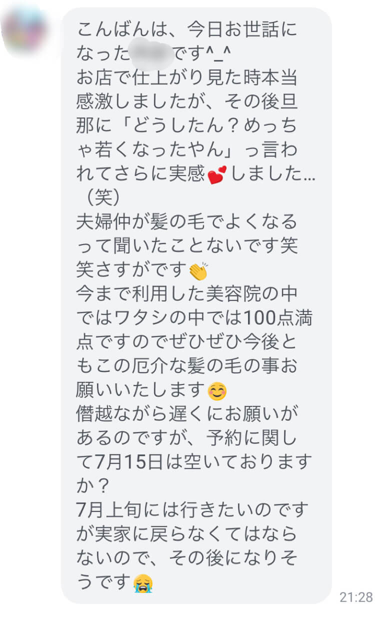その上で髪の管理をお任せいただきました。
