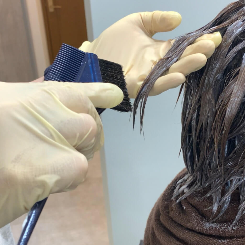 髪を安定させる工程を行います。